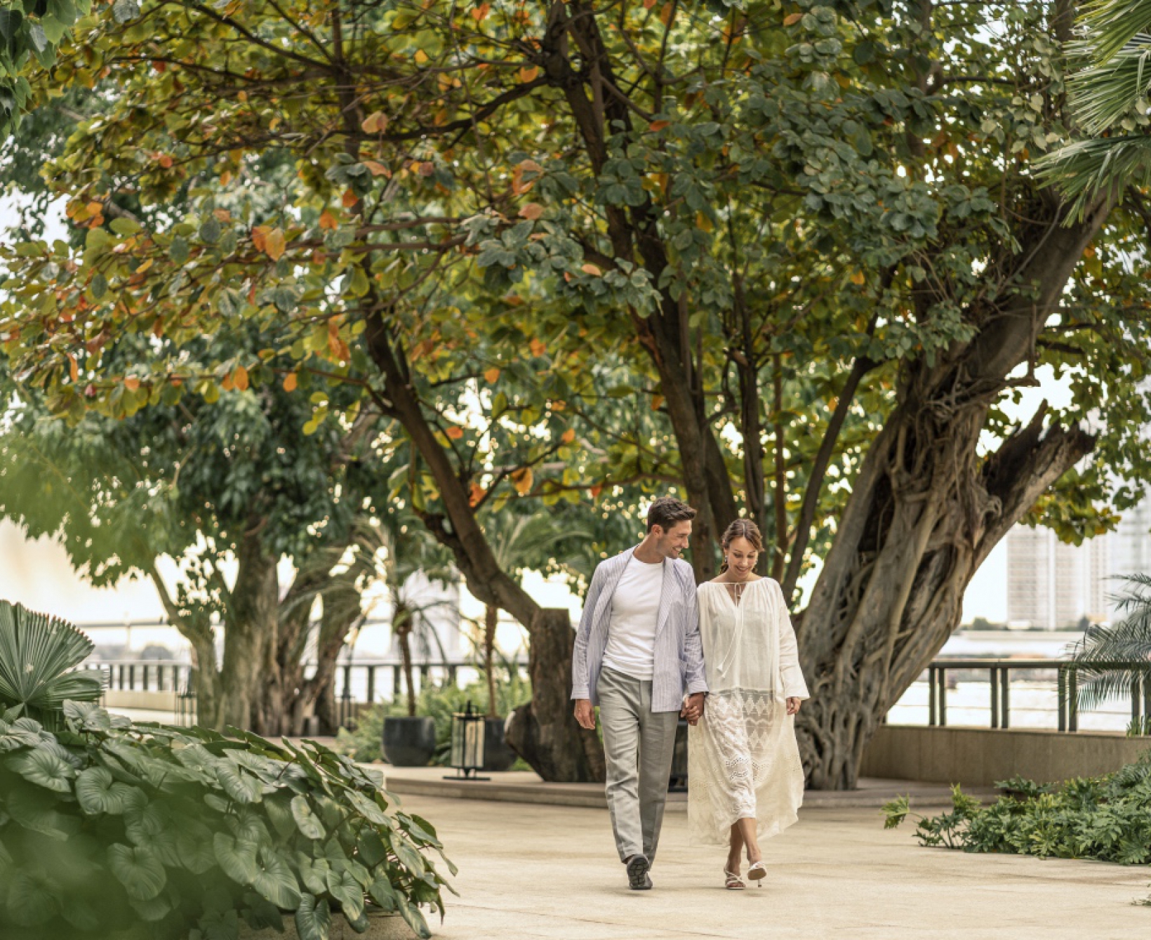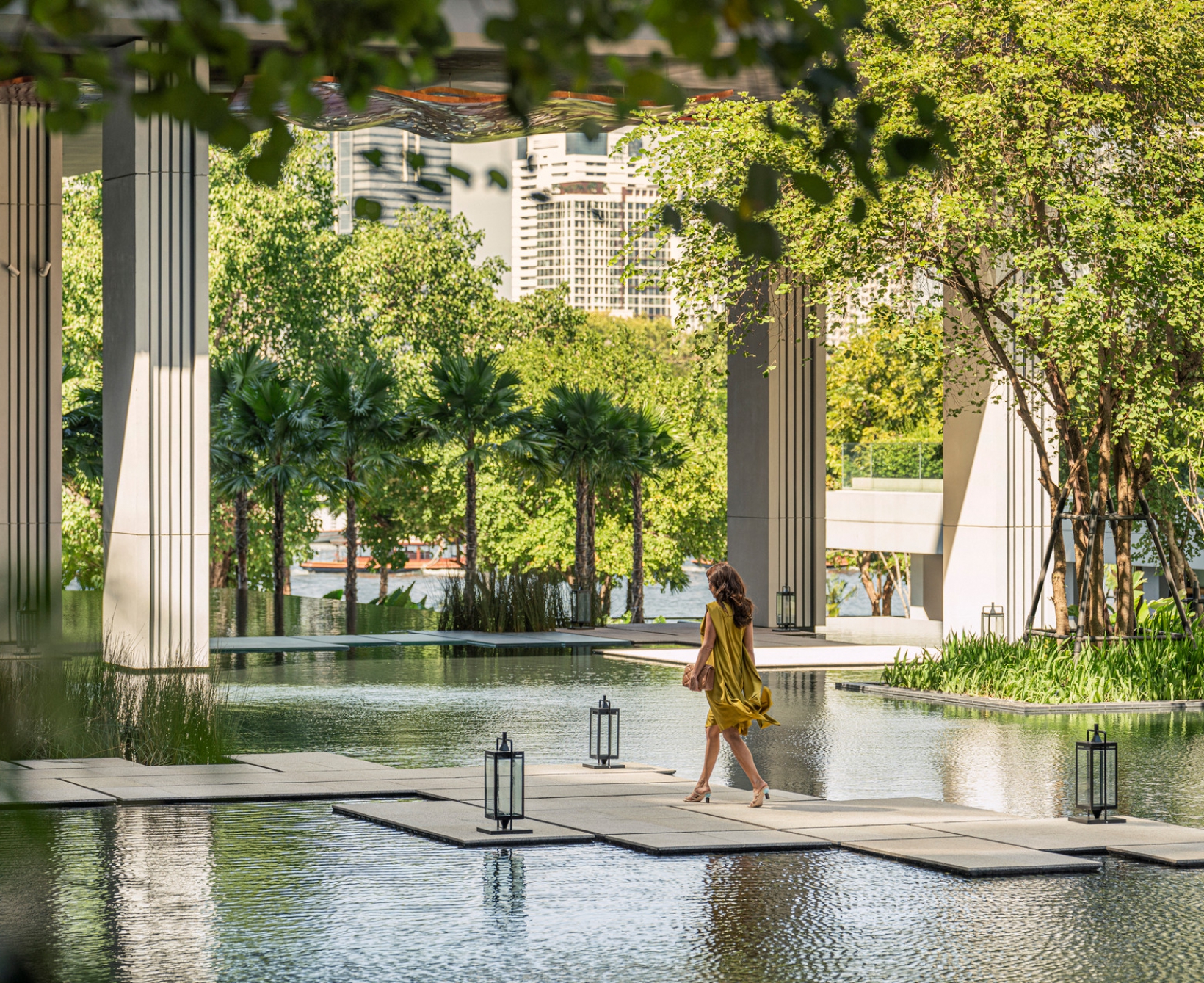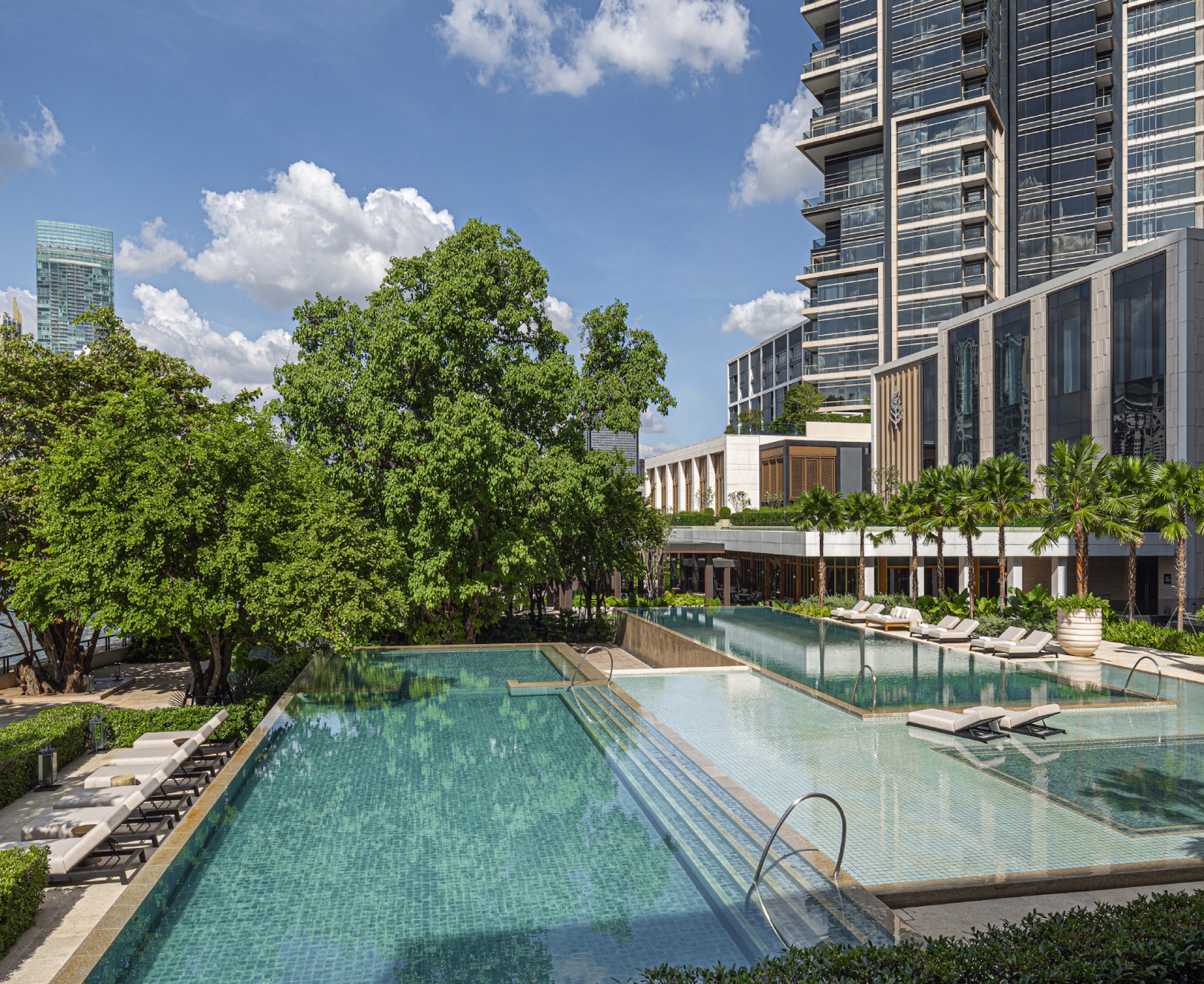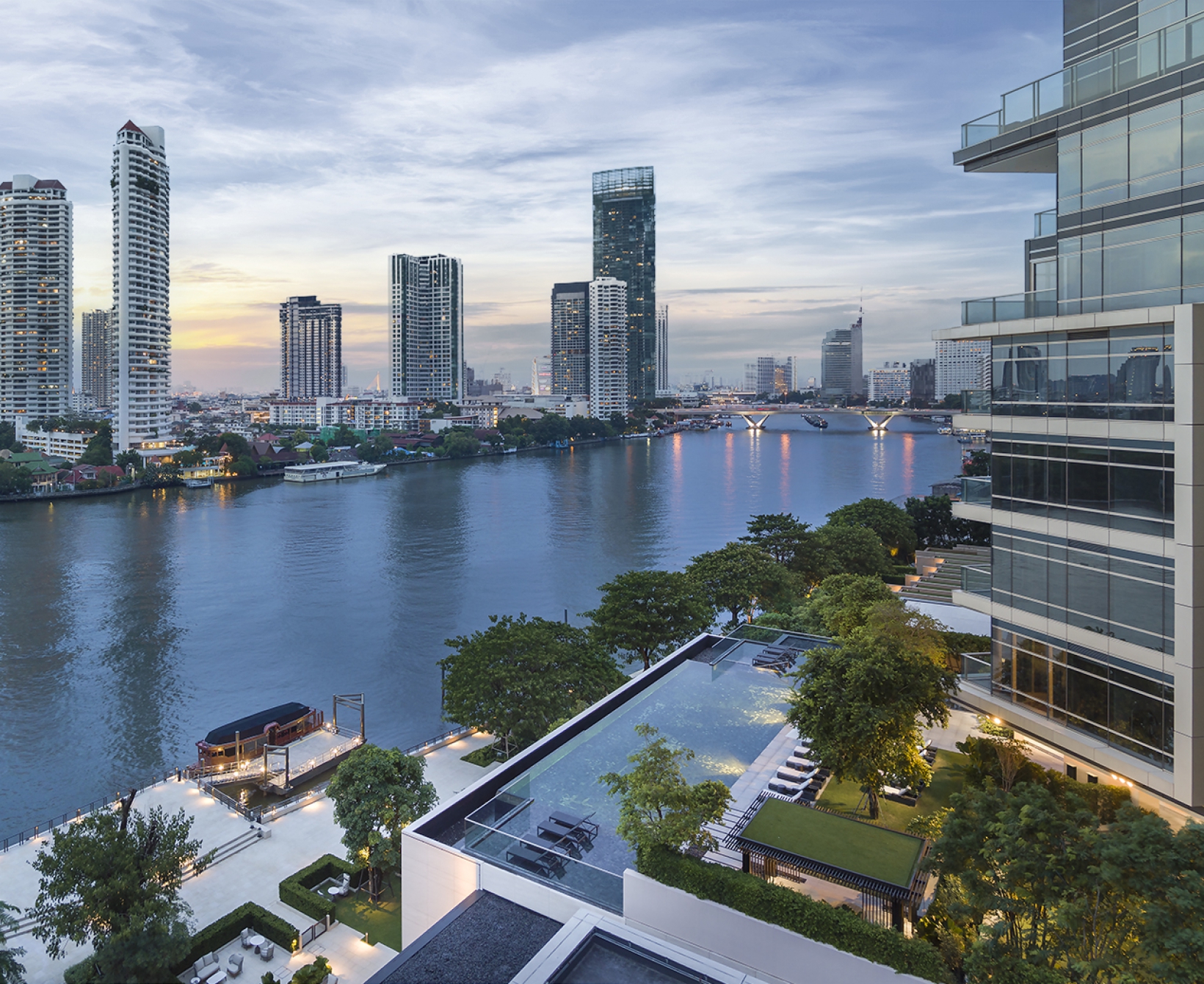 The hotel ground is uniquely arranged around a series of cascading green courtyards, reflective pools and water features that seamlessly blend outdoor and indoor spaces while echoing the constant flow of the nearby river. Inside, elegant applications of Thai craftsmanship are juxtaposed with the works of contemporary Thai artists, celebrating the city’s past alongside its present. The property houses 299 caringly appointed guest rooms; four restaurants presided over by a team of industry-renowned chefs, mixologists, and sommeliers; an urban wellness center; an ever-changing art space; and a pillarless Grand Ballroom, each presenting its own unique perspective of the lively Chao Phraya river.